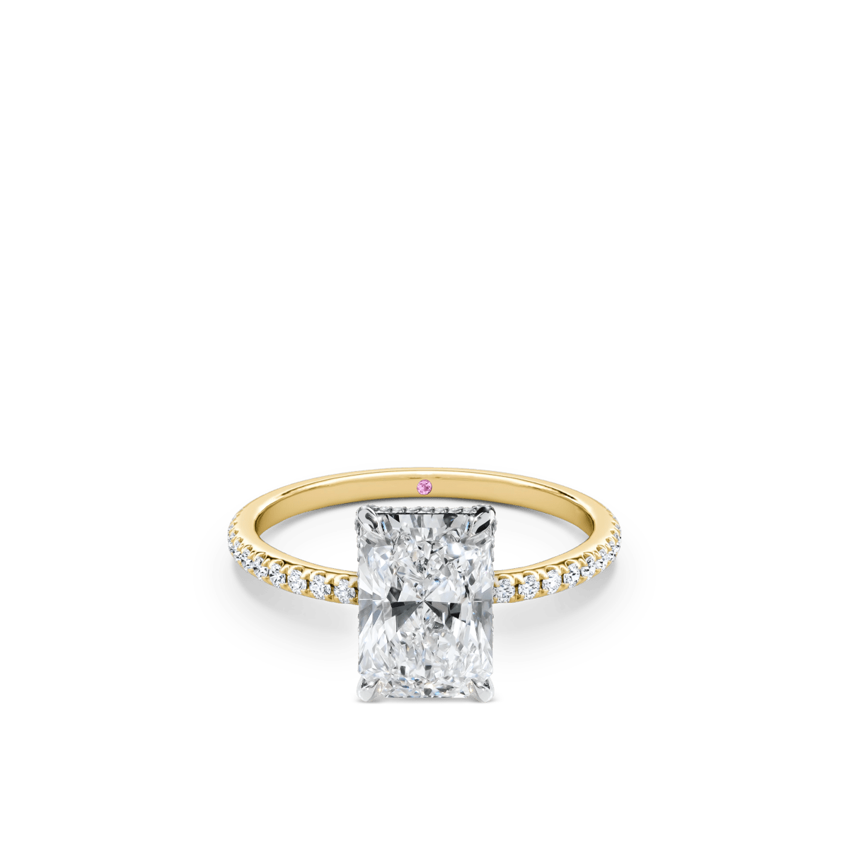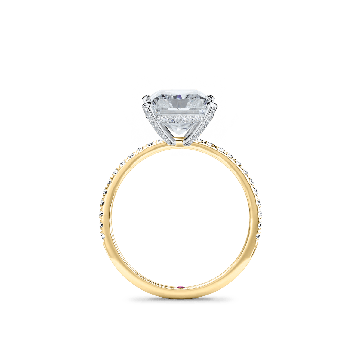A diamond set band features diamonds embedded around the band, adding extra sparkle and elegance. This design enhances the ring's overall brilliance, offering a stunning, eye-catching look that elevates the beauty of the piece.
